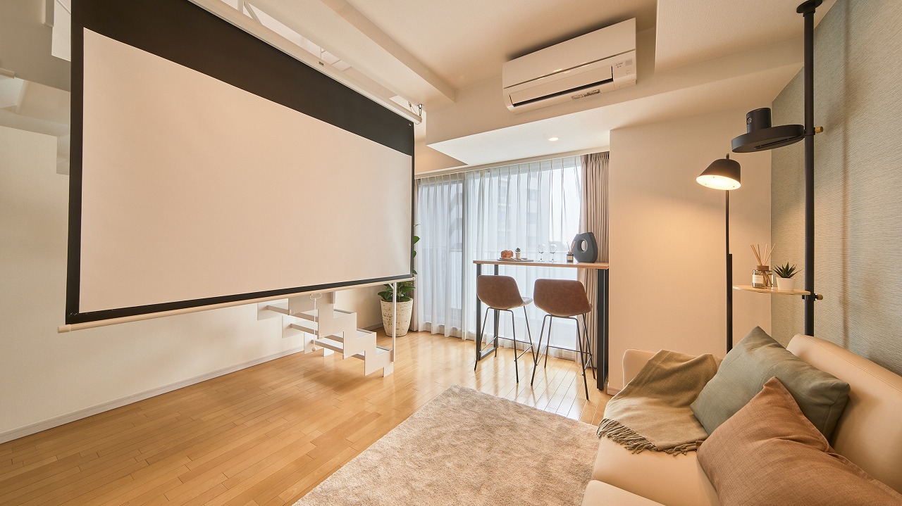 This room features a high-ceiling, open loft space, offering a sense of spaciousness that sets it apart from typical loft designs. A projector is included, allowing you to enjoy a cinematic experience in the comfort of your own home. A hotel-like, Two-level layout that balances relaxation and entertainment.